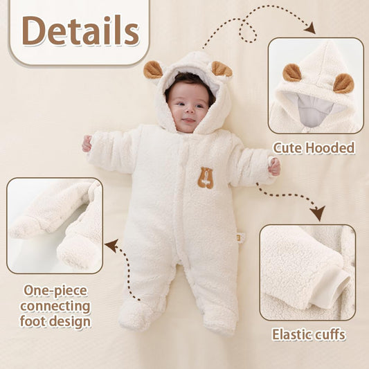 Baby Newborn Jumpsuit Footie Romper Hooded Warm Thicken Winter Bunting Outwear Snowsuit Pajamas for Girls Boys