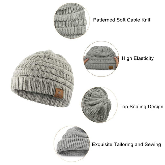 Warm Baby Knit Hat Cute Cozy Chunky Winter Cap Infant Toddler Baby Beanies for Boys Girls 3 Pack Black & White & Light Grey